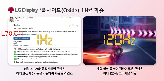 据介绍,这块面板搭载 Oxide(IT之家注:氧化物) 1Hz 技术,能够智能判断用户使用环境并自动调整刷新率。例如在查看邮件、PDF 文档或论文等画面基本不动的静态场景中,屏幕会以最低 1Hz 运行;而在播放电影、看直播或玩游戏时,则会提升到最高 120Hz。