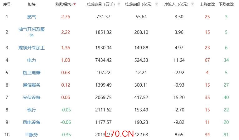 元股证券板块方面,燃气、油气开采及服务、煤炭开采加工等涨幅居前,贵金属、能源金属、工业金属等跌幅居前。
