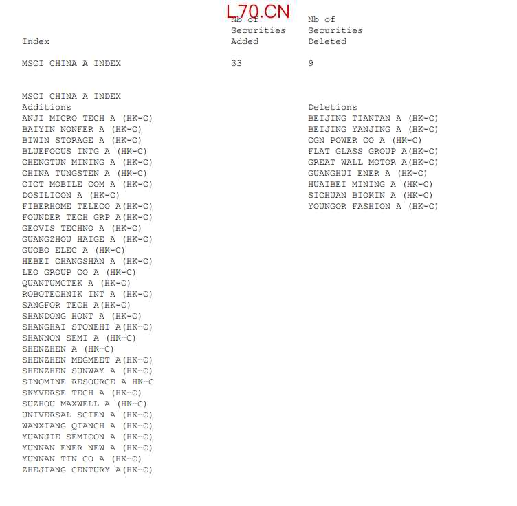 MSCI中国指数调整:新纳入白银有色等37只股票MSCI中国指数调整:新纳入白银有色等37只股票