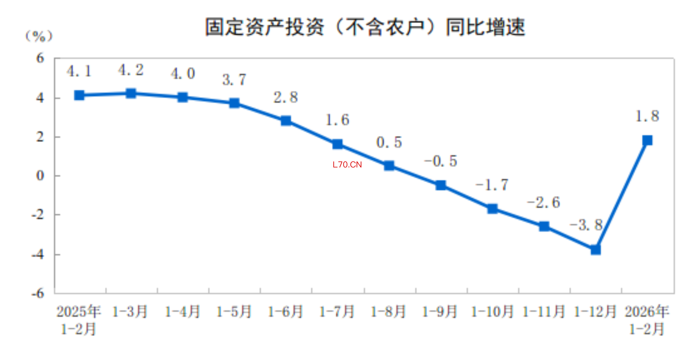 3月6日,国家统计局公布的数据显示,1—2月份,全国固定资产投资(不含农户)52721亿元,同比增长1.8%,上年全年为下降3.8%。其中,民间固定资产投资同比下降2.6%。从环比看,2月份固定资产投资(不含农户)增长0.39%。