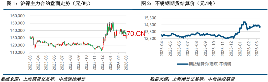 沪镍2605参考区间125000-145000元/吨。SS2605参考区间13500-14500元/吨。