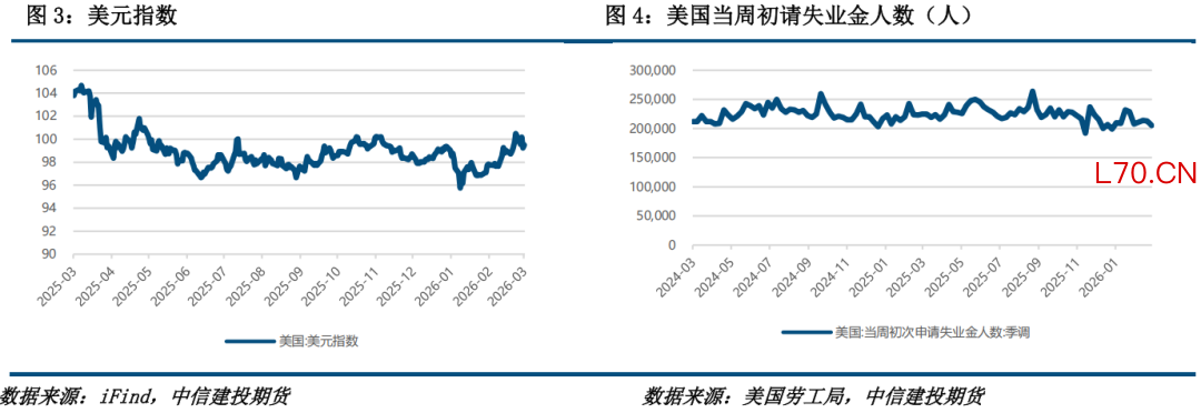 美联储将联邦基金利率目标区间维持在3.50%-3.75%不变,连续第二次“按兵不动”。中东局势对美国经济影响存在不确定性,点阵图显示2026-2027年仅各降息1次,降息路径更加保守,凸显美联储谨慎观望立场。鲍威尔表示,若通胀无进展,将不会降息。周四晚,美国上周初请失业金人数下降8000至20.5万人,创年内新低,低于市场预期的21.5万人。就业数据公布后交易员不再押注美联储2026年降息。