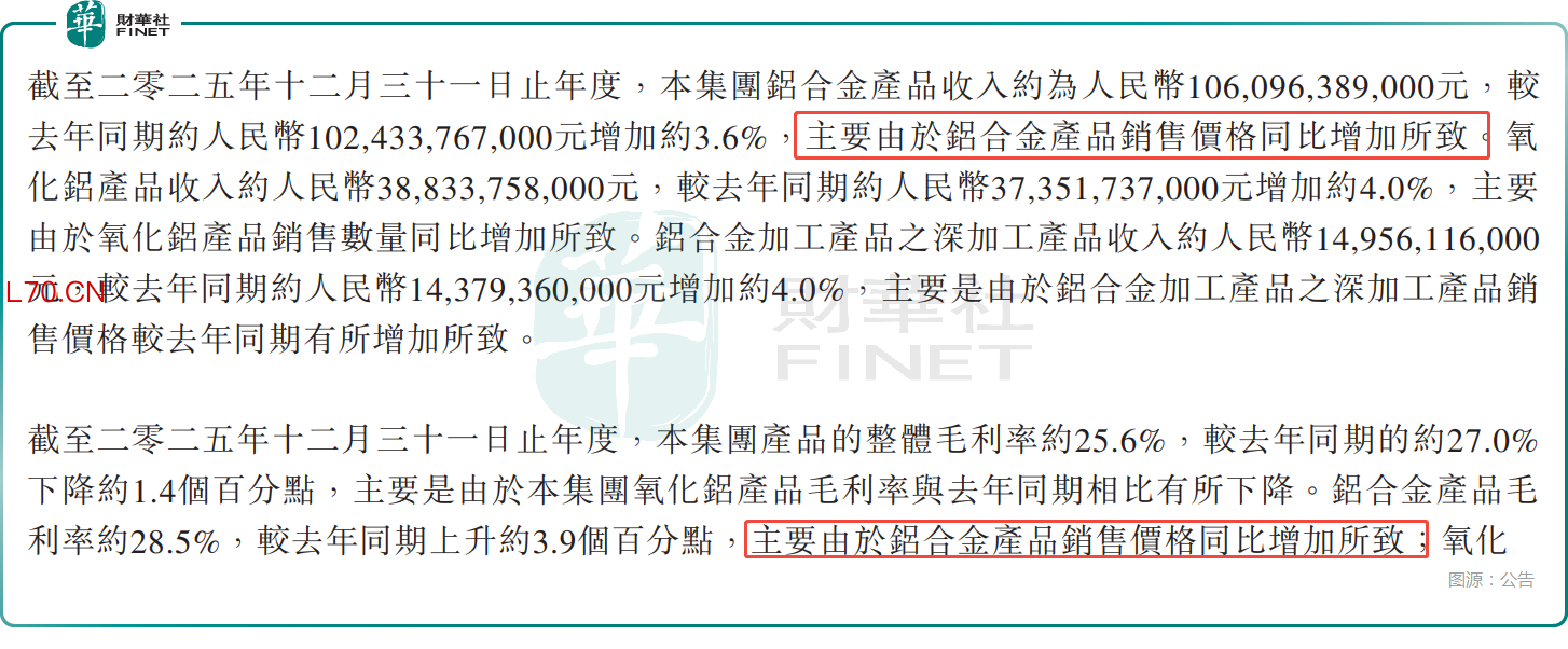 首先,量价齐升的逻辑正在强化。随着海外供给缺口的扩大,全球铝资源流向或将重构。中国宏桥凭借稳定的产能和“铝电一体化”的低成本优势,有望填补部分国际空白。更重要的是,电解铝销售价格的上涨将直接增厚公司利润。回顾2025年,公司最核心的铝合金产品收入增长主要得益于销售价格提升,而此次事件带来的铝价飙升,有望让这一趋势在2026年进一步延续。