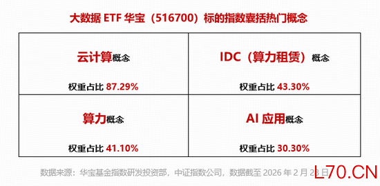 深度绑定国产算力(IDC、服务器)、AI应用领域的大数据ETF华宝(516700)被动跟踪中证大数据产业指数,涉及大数据存储、大数据生产、大数据分析、大数据运营平台、大数据应用等领域,权重股汇聚中科曙光、科大讯飞、紫光股份、浪潮信息、中国长城、中国软件等龙头股。